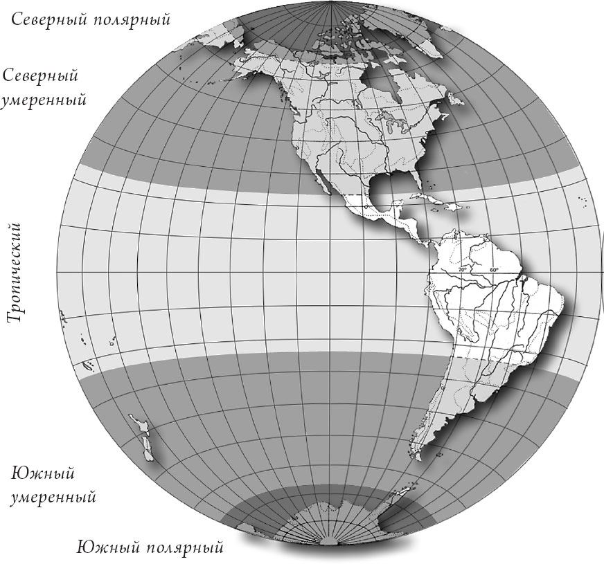 Карта поясов освещенности Земли. Западное полушарие