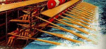 Вёсел у перевозящего нас "Любимца Нефунса" всего один ряд, но вёсла эти "квинкеремного" типа, длиннее и мощнее обычных, и орудует каждым из них два гребца. Если максимальная скорость не нужна часть вёсел убирается, как и сделано сейчас. В результате "биремного" вида "Любимец Нефунса" не имеет и особого интереса римлян не вызывает. Глянули мельком, да и переключились на другие суда, выглядевшие поподозрительнее. Тем более, что и разгадай они даже немудрёный в общем-то секрет "замаскированной биремы" Арунтия, не очень-то он их встревожит. Один хрен, не тягаться его "хитрому" кораблю в скорости с триремой, вся конструкция которой заточена под стремительный ход любой ценой.