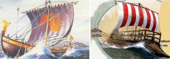 Но совершенно аналогичные мысли были в своё время и у нашего нынешнего нанимателя, "досточтимого" Арунтия. Новые веяния в карфагенском торговом судостроении он совместил вот с этим вот "на хрен, на хрен" и заказал в результате "замаскированную бирему" на основе старого традиционного судна этрусков.