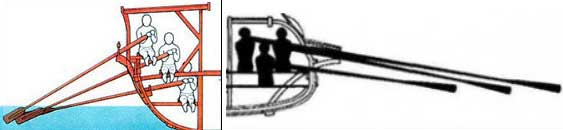 А как быть с кораблями повышенной ярусности? Реально никак. Пентера та же самая или квинкерема технически тоже трирема, только побольше, да пошире. Не вёсел у неё пять рядов, а гребцов по одному на нижнем ярусе и по два на среднем и верхнем. Соответственно, и вёсла на этих ярусах подлиннее, да помассивнее.