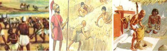 Администрация общины, стража, писцы, налоговые чинуши и это только надводная часть айсберга. Есть и подводная. Судя по греческому вооружению стражи и по курсирующим ладьям с греческими наёмниками на борту, деревни вдоль основных рукавов Нила контролируются правительством ага, в теории. А на практике в сумерках являются представители "патриотической оппозиции" и проводят собственную продразвёрстку, от которой тоже хрен отвертишься. В общем, крестьяне вынуждены платить и тем, и другим, а крестьянки посмазливее ублажать и тех, и других, поскольку ни одна из конкурирующих "крыш" не в состоянии защитить своих данников от поборов со стороны конкурента. Да и не очень-то стремятся, если приглядеться повнимательнее. Мы пригляделись, и у нас сложилось впечатление, что между "полицаями" и "партизанами" существует негласная договорённость о том, чтобы не мешать друг другу. Зачем, когда зерна на тучных египетских нивах вырастает вдоволь и хватает на всех?