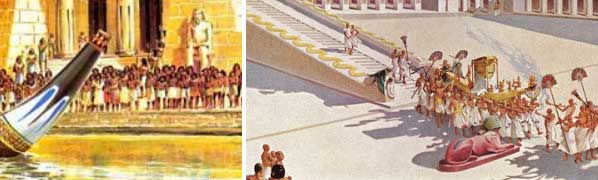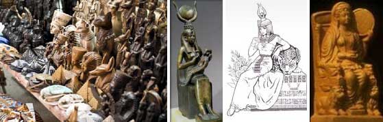От египетских богов в Мемфисе хрен куда денешься. Громадные изображения на стенах дворцов и храмов, маленькие статуэтки на прилавках торговцев они повсюду.