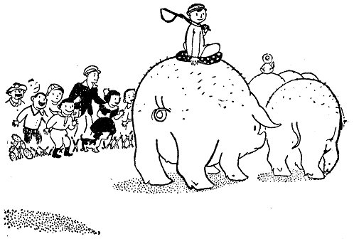 Но мужчина, ехавший на спине последнего слона, махнул кнутом и объяснил: