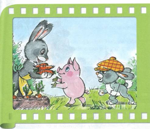 Крольчиха отобрала четыре самые большие морковки, дала их кролику и Чуне.