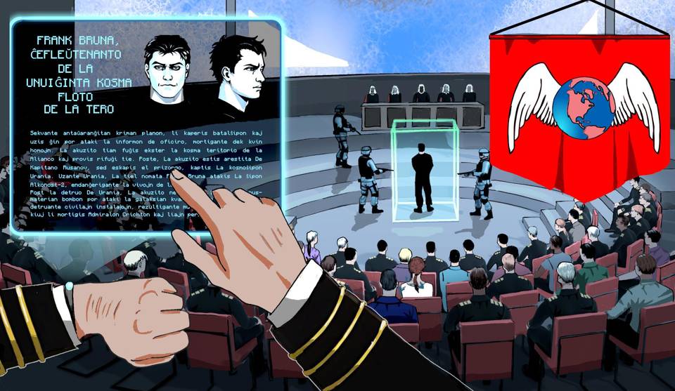 Именем Объединенной Земли, открывается судебное заседание по делу Кая Эсперо, известного также как Фрэнк Браун, бывшего старшего лейтенанта Космофлота, бывшего офицера отряда «кси». По специальному решению, дело разбирается не в военном трибунале, а в высшем суде Альянса.