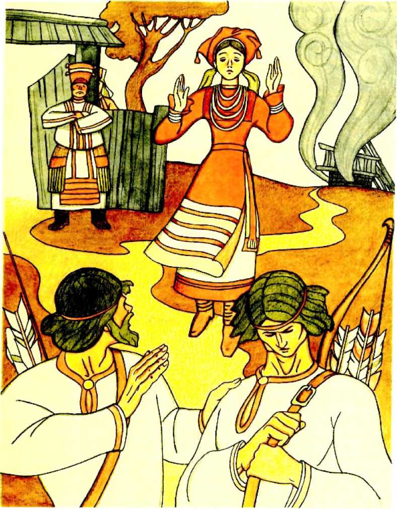 Однажды братья уехали на охоту. Злые жены их и задумали погубить Дуболго Пичай.