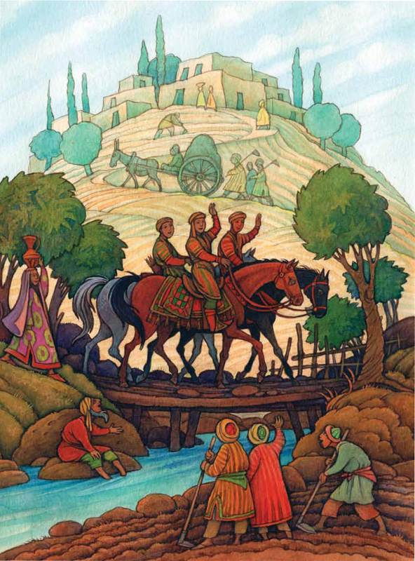 Рано утром сели братья на коней и отправились в путь. До позднего вечера ехали они без остановки, проехали очень много.