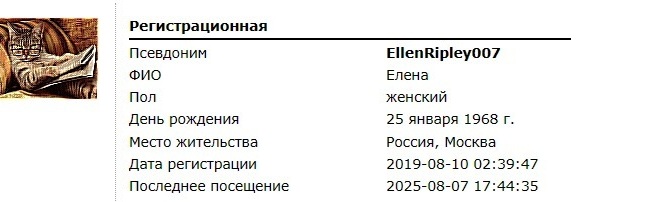 8 Лаборант EllenRipley007 читатель и фонат «Секты педофилов» имени Парфёнова М. С. Леди, проявившая гражданское самосознание и позицию, в отличие от предметов литературного воздыхания. Настолько ярко, что Алексей121 девушку забанил на неделю.