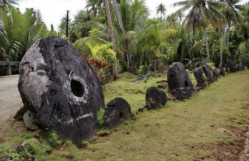 Очень любопытна легенда с островов Адмиралтейства (у северо-восточного берега Новой Гвинеи) Светлокожий народ (полинезийцы?) некогда прибыл со своей родины, мифического острова Яп. Они умели создавать постройки из огромных камней (мегалиты) и керамические изделия. Легенды жителей Соломоновых островов тоже называют этот народ выходцами с мифического острова Яп. Причем легендарный Яп вовсе не тот реальный Яп, что лежит в группе Каролинских островов. Голландский ученый Ризенфельд полагает, что мифический Яп был расположен восточнее или юго-восточнее острова Науру. Он считает также, что Яп населен был полинезийцами, которые якобы и являются создателями мегалитической культуры Новой Гвинеи и Меланезии. Однако его мнение не очень убедительно обосновано. Если это были действительно полинезийцы, то волна их переселения прошла по Меланезии, пожалуй, намного раньше прибытия туда самих меланезийцев. А это не вяжется с представлениями о миграциях полинезийцев.
