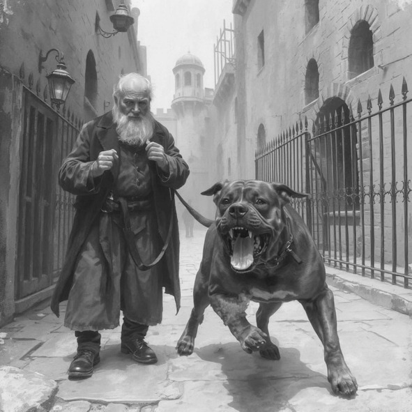 И, когда она начала хрипеть и ослабевать, из калитки выскочили еще три такие же огромные зверя и кинулись на отца. Мужчина закричал, когда три зубастые пасти одновременно вонзились в его лицо, руку и ногу. Крик разнесся по всей улочке. Псы рвали лежащего на земле мужчину, кровь хлестала из ран. А старик, молча, и спокойно смотрел, как звери продолжают атаковать захлебывающегося собственной кровью человека, решившего вступиться за оскорбленного ребенка.