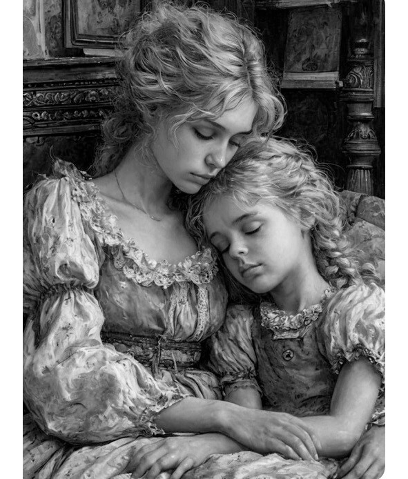 Из темноты зеркала на ребенка смотрело нежное исхудавшее женское лицо с большими синими глазами. Они излучали любовь невероятной силы и грусть, которую невозможно было измерить и постичь. А вслед за лицом возникло и очертание хрупкой женской фигуры, склонившейся над кроватью, в которой лежала больная девочка.