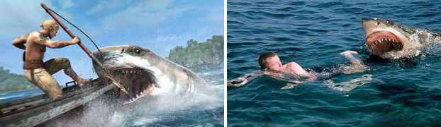 В отличие от легкомысленных современных посудин, которые акулы лихо таранят и проламывают в голливудских ужастиках, наш "китобоец" был сколочен на совесть и в расчёте на подобные приключения, да и кормчий тоже ворон не ловил, а в нужный момент подрулил вбок, сводя таран на рикошет. На параллельном курсе акуле впендюрили в бочину два ручных гарпуна и заряд из крепостного ружья, а уже вдогон ещё один гарпун из "скорпиона", уже шестой. Этого оказалось достаточно рыбина ещё трепыхалась и была ещё опасна для любого, кто вздумал бы побороться с ней "честно", но у нас, естественно, таких дурных героев не оказалось, и мы её тупо отбуксировали на всех шести линях к небольшой бухточке сбоку от основной гавани Нетониса, где и расстреляли на мелководье из крепостных ружей. Вытаскиванием нашей зубастой добычи на берег и её разделкой занимались уже другие