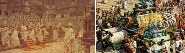 Этот знатнейший патрицианский род и в самом деле переживал сейчас далеко не лучшие для него времена. И хотя босс несколько сгущал краски живы ещё оба брата, и Публий Африканский, и Луций Азиатский, но влияние у них уже не то. Триумф Луция за победу над Антиохом при Магнезии стал их последним торжеством, после которого начались их злоключения. Плебейские трибуны по наущению Катона подвергли Луция судебному преследованию по обвинению в утаивании и присвоении части полученной от Антиоха контрибуции, а Публий Африканский, заступаясь за брата, своим высокомерием больше подкузьмил ему, чем помог, да и себе тоже дальнейшую жизнь здорово осложнил. Бывает такое с великими утрачивают от своей славы нюх, перестают держать нос по ветру, и их чересчур заносит на очередном вираже. Занесло и победителя Ганнибала. Ему ещё и прежней-то его выходки не забыли, когда он хоть и по государственной надобности, но совершенно противозаконно открыл казначейство, заявив выпавшему в осадок сенату, что он это сделает, поскольку только благодаря ему двери казначейства и стали запирать типа, раньше в этом смысла не было, пока он ту казну своей добычей и контрибуцией с побеждённого Карфагена не наполнил. И хотя по сути-то он был прав, разве делается так в республиканском государстве, хронически бздящем чрезмерного усиления, да и просто популярности того или иного из великих? Да будь ты хоть трижды велик скромнее надо себя вести при таких раскладах. А он тут ага, нашёл время снова норов свой показал. От Луция потребовали предъявить сенату счётную расходно-приходную книгу, и Публий вообще попёр в дурь попросил брата принести эту книгу, и когда тот принёс, забрал её у него и демонстративно изорвал в клочья. Рвал и гневно вопрошал сенаторов, на каком это таком основании от них, принёсших Риму пятнадцать тысяч талантов серебра, требуют отчёта о каких-то жалких пяти сотнях. Это оказалось уже чересчур даже для его заслуг сенат усмотрел в этой новой выходке уже явное неуважение, что сделало неизбежныи и проигрыш Сципионами судебного процесса.