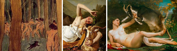 Сперва их ещё не было видно, но на заднем плане вдруг заорали, завизжали и заметались, а затем паника начала распространяться к середине. Часть этих дионисанутых ломанулась в стороны, но слева молча и деловито выступили из кустов егеря, и их вид не предвещал сектантам ничего хорошего. Правее толпа побежала в сторону тех двух баб с козлами сидящую в обнимочку со своим шуганули, а об лежащую кто-то споткнулся, и не было видно за мечущимися, стоптали её или нет. Потом и там показались из зарослей егеря, но обезумевшая толпа не враз просекла расклад, и тем пришлось дать залп. В конце концов эти гулящие безобразники побежали в единственную сторону, с которой не было видно преследователей, то бишь в нашу