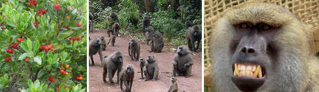 удовольствием те в конце концов "сами виноваты", нехрен было переться на "обезьянью" территорию. Но они уже и Кейптаун затерроризировали целых четырнадцать бабуиньих стад, ранее бомжевавших на городских помойках, теперь снуют по улицам города и пристают к прохожим, вымогая подачки, а то и вовсе нагло отбирая приглянувшееся. И в машины забираются, и в дома, а ты их тронуть не смей. В общем, догуманничались, млять!