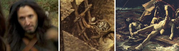 У римлян Ампиат, как и следовало ожидать, вовремя всей серьёзности момента не осознал и в результате тоже на рудники загремел. А римские рудники это, знаете ли, совсем не наши почувствуйте, как говорится, разницу. Разницу он почувствовал быстро и в полной мере римляне по этой части весьма высококвалифицированные воспитатели. Заговор, подготовка, бунт вырвалось их на свободу из доброй сотни десятка полтора, от погони по горячим следам смогли уйти в заболоченную дельту Бетиса пятеро, от облавы в дельте, успев с грехом пополам связать свой плот-развалюху, спаслись лишь они втроём. Форсировать на своём горе-плавсредстве Атлантику они, конечно, не собирались, хотели просто вдоль берега подальше от района их розыска убраться, после чего продолжить свой побег по твёрдой земле, но злодейка-судьба в лице морской стихии распорядилась иначе, подсуропив им отливом.