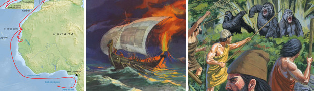 Да, я вспомнил дедушка Волний как раз про это и говорил. Там ещё была огнедышащая гора, а ещё они там ловили больших обезьян, которых финикийцы приняли за волосатых людей, но эти обезьяны оказались очень сильными и свирепыми, и живыми их захватить не удалось.