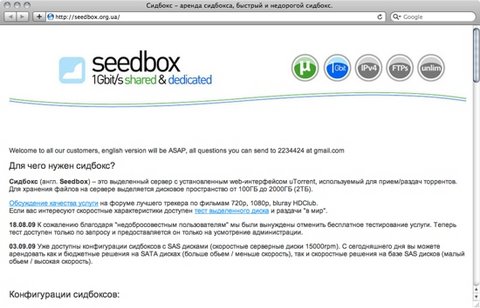 Поскольку изначально сидбоксы были ориентированы на команду специалистов и пока что не особенно распространены, цена и количество технических сложностей остаются высокими. Этим объясняется малое количество предложений на отечественном рынке, где существует чуть ли не один единственный официально работающий сидбокс-сервис seedbox.org.ua. Да и тот управляется энтузиастом-одиночкой.