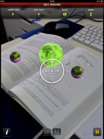 Речь идет об игре, носящей название Ball Invasion и представляющей собой довольно нехитрый по сути шутер, в котором декорациями для игры служит реальный мир вокруг играющего. То есть пользователь держит свой iPad 2 прямо перед собой, и планшет становится как бы окном в "иной мир", где прежняя обстановка оказывается наполнена мишенями, которые можно преследовать и отстреливать.