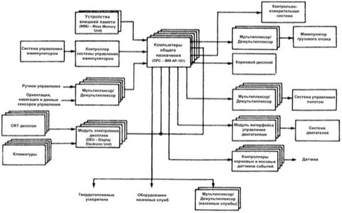 Но шаттл - не обычный реактивный самолет. Его компьютерные системы должны работать не только в режиме авионики, но и обеспечивать: ориентацию корабля на орбите, навигацию, стыковку с космическими станциями и запуск в эксплуатацию таких объектов, как, например, спутники.