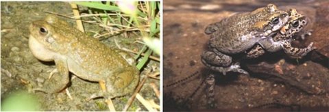 Поющий самец пуштунской жабы и пара жаб на нересте (видите шнуры икры?). Фото М. Штёка