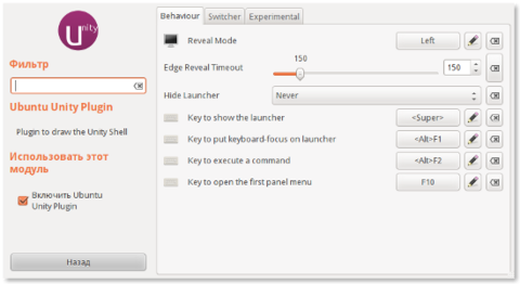 Ещё один полезный пакет - compizconfig-settings-manager ("Менеджер настройки CompizConfig") из штатного репозитория Ubuntu. Unity является плагином Compiz, и в программе есть интерфейс для настройки фирменной оболочки Canonical. Кроме того, она позволяет изменять другие параметры композитного менеджера.