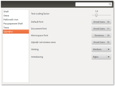 В Сети есть много статей по тюнингу Ubuntu 11.10. Практически все они рекомендуют установить из штатного репозитория пакет gnome-tweak-tool ("Дополнительные параметры системы"), который позволит указать шрифты, сглаживание, тему значков, курсоры и т.д. У него есть существенный недостаток - зависимости. Пакет тянет за собой gnome-shell и gnome-session-fallback (а также сопутствующие вещи, вроде Clutter).