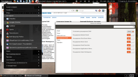 Что касается тюнинга, то он необходим - в системе явно не хватает инструментов для настройки интерфейса. Вариант использования Gnome Shell с расширениями очень интересен (несмотря на общую убогость, штатная оболочка Gnome гибко конфигурируется). Но едва ли он имеет смысл в Ubuntu. Этот дистрибутив заточен под Unity, и для такого варианта лучше взять, скажем, Fedora или OpenSUSE.