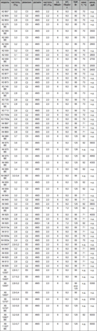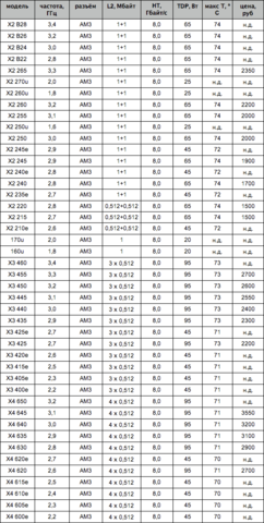 Модели с двузначным индексом и буквой B - модификации для корпоративных пользователей, доступность которых гарантируется в течение 24 месяцев со дня представления. Модели с буквой "T" после числового индекса - модификации с технологией автоматического разгона Turbo Core (на 3 ядра для X6 и на 2 ядра для X4). Модели с буквой "e" после числового индекса - модификации с пониженным энергопотреблением. Модели с пометкой Black Edition (в нашей таблице отмечены буквами - BE) - модификации с разблокированным множителем, что упрощает "разгон".