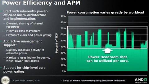 В архитектуре Bulldozer будет также реализована технология автоматического разгона, аналогичная Turbo Boost, применяемой в процессорах Intel серий Core i7 и большей части Core i5. Напомним, что эта технология включается через BIOS и автоматически повышает тактовую частоту