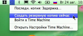 и выбрать команду Создать резервную копию сейчас (Back Up Now) (рис. 3). Time Machine запустится и выполнит указанную операцию (рис. 4).