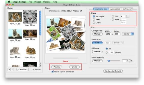 ShapeCollage - приложение, позволяющее автоматически создать коллаж из серии снимков в виде рассыпанных на рабочем столе фотографий.