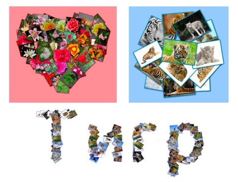 Рис. 2. Коллажи созданы в форме сердца, круга и текста
