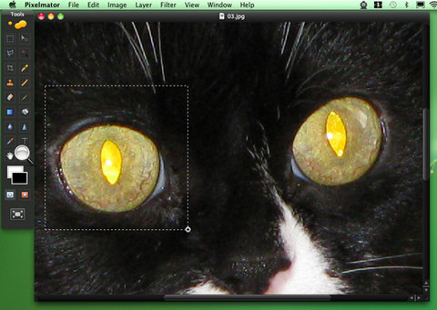Как известно, Photoshop имеет специальный инструмент для удаления эффекта красных глаз, а в Pixelmator такого инструмента нет. Но не беда, можно обойтись и без него, тем более что и в Photoshop инструмент