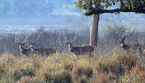 Закат в джунглях - зрелище захватывающее и феерическое. Тигропардов я в очередной раз проворонил, потому будет повод прокатиться по Раджаджи ещё раз в следующем году. Всё время, что мы путешествовали по национальному парку, я краем глаза следил за Джайантом. Друг мой подскакивал на сиденье при каждом очередном явлении самого заурядного оленя и павлина. Глаза Джайанта загорались, он хватал камеру и принимался щелкать напропалую. Реакции эти тем более казались мне удивительными, что Джайант за последние три года только по моим подсчетам бывал в национальном парке раз 20: парк входит в традиционную экскурсионную программу посетителей Ришикеша, и Джайант возит туда всех своих корейцев (у Real Adventure, компании Джайанта, очень тесные связи с Южной Кореей, поэтому группы страждущих приобщиться к истокам гималайской йоги находятся в непрекращающейся ротации).