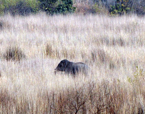 До слона далеко, под самый нос его вытянула моя никоновская "пушка". Мой подслеповатый брат до самого последнего момента был уверен, что копошащаяся в траве точка была чем-то вроде дикого кабана.