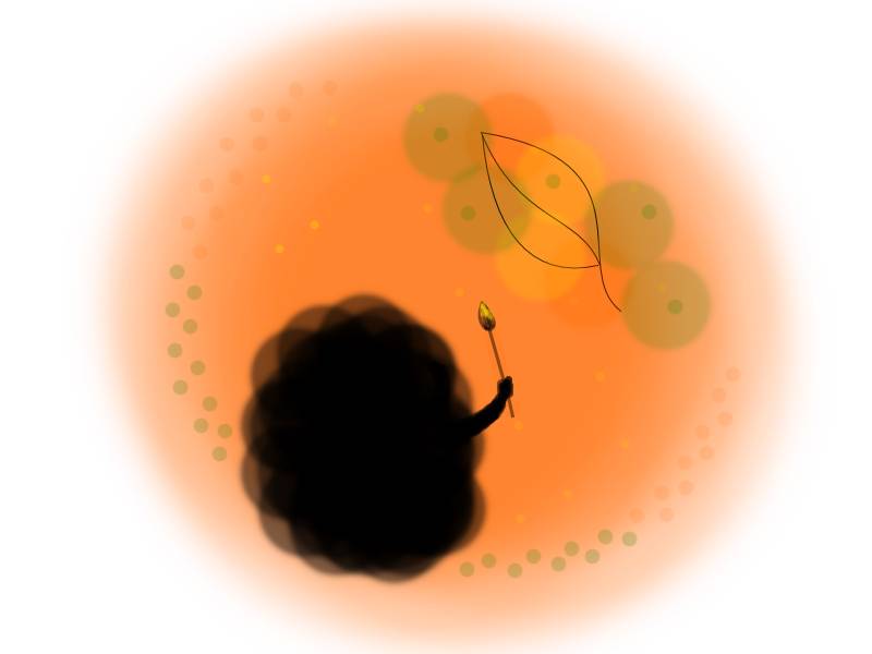 Пирожок очень обрадовался. Взяв на кончик кисти немного жёлтой краски, он закрыл глаза и стал рисовать. Он думал о листьях, что скоро укроют весь лес, о том, как они будут весело шуршать и цепляться за иголки. Он так размечтался, что стал рисовать в воздухе и кружиться.