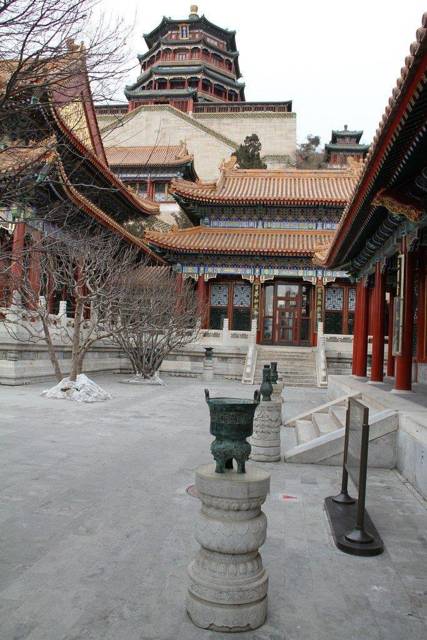 Кое-где в Ихэюань снежок еще оставался, когда мы устраивали на камеры беготню по историческим местам. Дядя Бу сказал, что это не проблема, при монтаже подчистят лишнее.