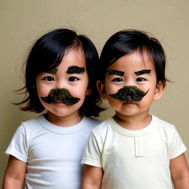 Так мы и вышли из спальни красивые до невозможности. Ведь ничто так не украшает и не преображает ребенка, как приклеенные брови и усы из кусочков нори. И бороды, но на них только парни решились. Они достаточно суровы для такого.