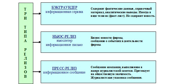 На тот случай, если журналистика когда-нибудь станет академической наукой, к чему она особенно стремилась у нас в советские времена, следует учредить простенькую двухуровневую классификацию, в которой пресс-релиз вступает в родовидовые отношения с другими типами сообщений для прессы. Для простоты все их назовем релизами это слово тоже употребляется в профессиональной среде.