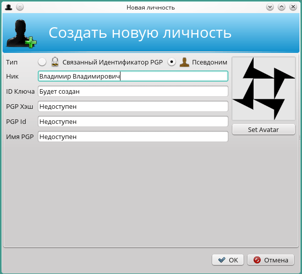 Теперь остаётся один шаг к цели: найти в чатах действующих участников криптоплатформы и обменяться с ними сертификатами. Для того, чтобы иметь возможно заходить в чаты, отписывать в форумах или делать объявления в каналах, необходимо создать как минимум одну личность:
