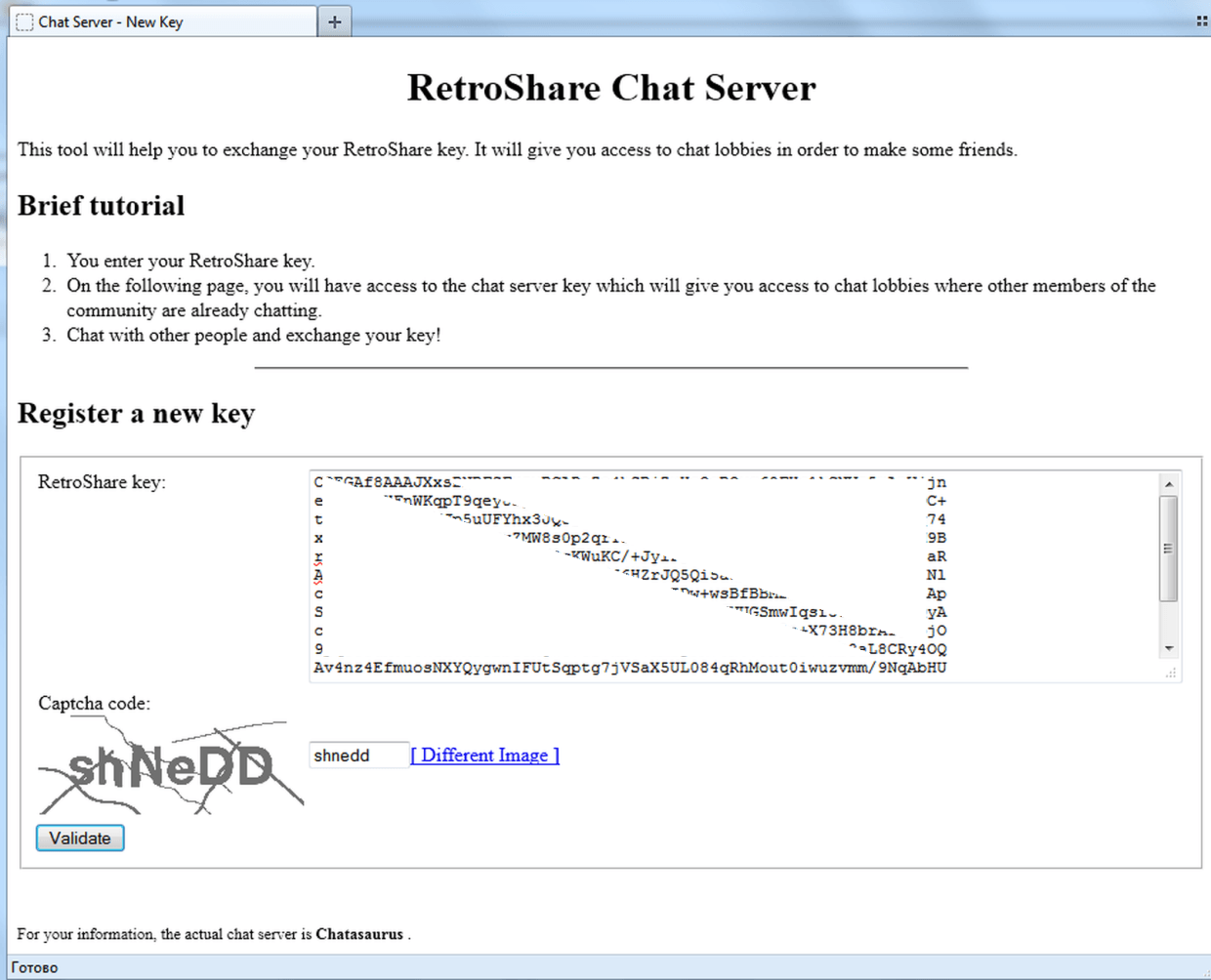 На момент записи предпочтителен чат-сервер https://sss.chaoslab.ru/rs/key_add.php?lang=ru