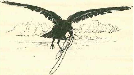 Андрей прекратил спор, позвонив в колокольчик, который издал чистый и нежный звук. «Я прошу золотую цепочку для Марии», сказал Андрей. В этот момент солнце заходило; на горизонте небо было окрашено в ярко-оранжевый цвет. На оранжевом фоне вдруг показалась черная точка; она стала быстро увеличиваться, приближаться и вскоре совершенно ясно был виден черный-пречерный морской ворон, который летел, задевая крылом по воде.