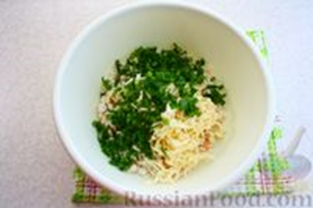 Зелёный лук мелко нарезаем и добавляем в миску.