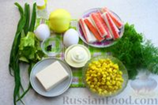 Салат с крабовыми палочками, яблоком, плавленым сыром и кукурузой готов!
