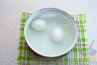 Яйца отвариваем вкрутую (8 минут) и оставляем остывать в холодной воде.