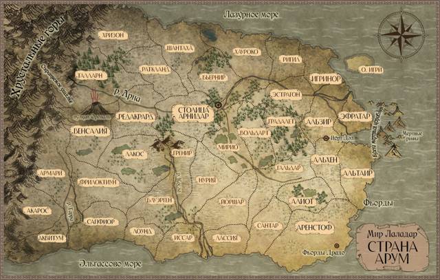 Карта королевства. Наше княжество Аренстоф самое большое ( да, мы такие))), и с двух сторон омывается морем.