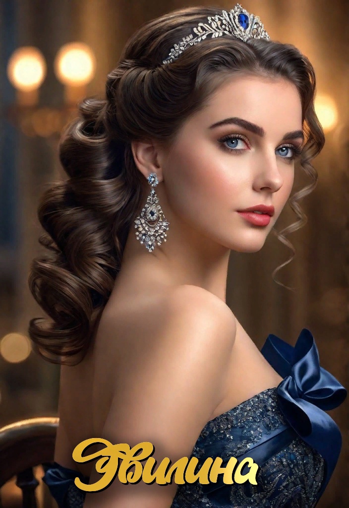 Девушка, кстати, очень красивая, элегантная. Завитые локоны, тщательно собранные у висков, свободно падают на спину, создавая впечатление небрежности, только женщины знают, насколько тяжело даётся такая ложная естественность. Идеальные черты лица, пухлые губы и огромные серые глаза, невероятный цвет которых подчёркивает тёмно-синее платье с открытыми плечами, туго затянутым корсетом и пышной юбкой в пол. Ну и баснословно дорогие украшения в виде бриллиантовой диадемы и тяжёлых серёжек с теми же камнями куда ж без них!