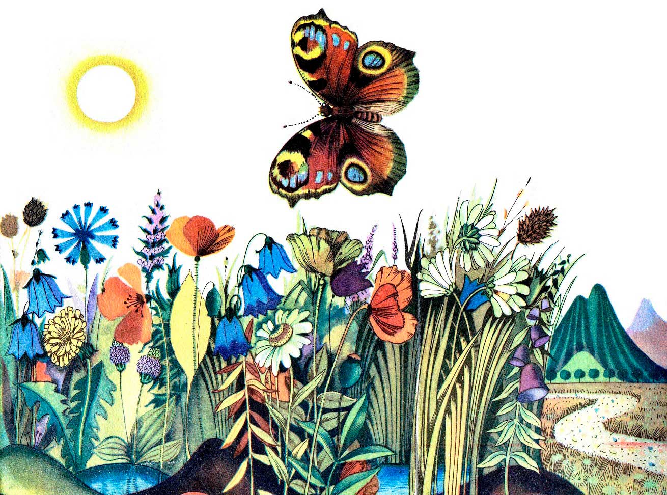 Так Бабочка и кружилась над цветами до самойосени в своём бальном платье, потому что цветов на лугу было много-много.