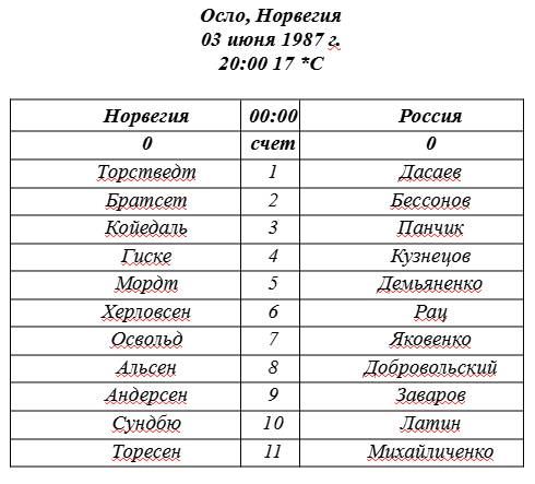 Вот и первый шанс, Добровольской получает справа передачу от Яковенко, обыгрывает своего защитника и отдает вперед на меня. А я уже в штрафной и, как и просил Лобановский, сбрасываю мяч Заварову. Тот с лету бьет, но чуть мимо, мяч свистит рядом с правой от вратаря стойкой ворот.